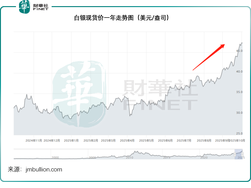见下图,若按每盎司47.58美元计,白银现货价今年以来累计上涨64.53%,其中第3季的累计涨幅达到31.80%。