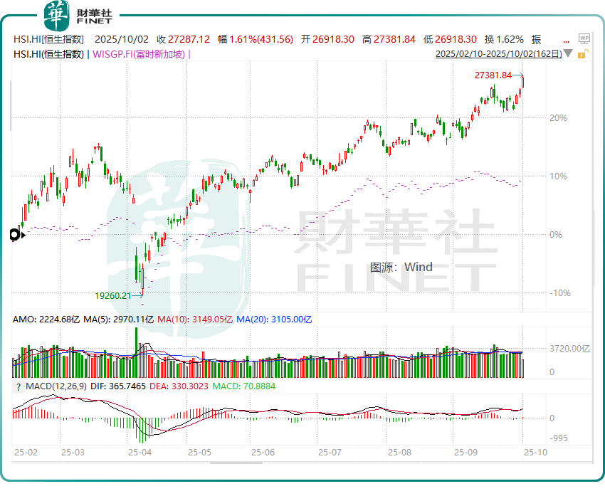 今年以来,香港恒生指数累计涨幅达36%,同期富时新加坡指数累计涨幅仅有约14%。此外,港股IPO融资规模在全球领先,根据Wind统计,2025年前9个月,港股IPO(包括创业板)募资总额达约1823.97亿港元(约234.37亿美元),同比大幅增长227.15%。