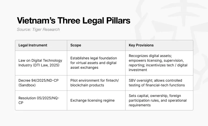 第二项关键举措是2025年7月1日生效的《监管沙盒法令》。在越南国家银行主导下,该沙盒机制为金融创新提供测试环境。虽未专为加密货币设计,但通过反洗钱、客户身份验证及结算等核心要求,预计将与交易所牌照制度形成监管联动。 最具即时影响力的当属2025年9月9日颁布的第05/2025/NQ-CP号决议,正式启动为期五年的虚拟资产发行与交易试点。这成为交易所在越南合法运营的首个实践框架。关键限制在于:试点阶段仅越南本土企业可申请运营商牌照,境外交易所须通过合资或提供技术、合规系统及流动性支持等方式间接参与。