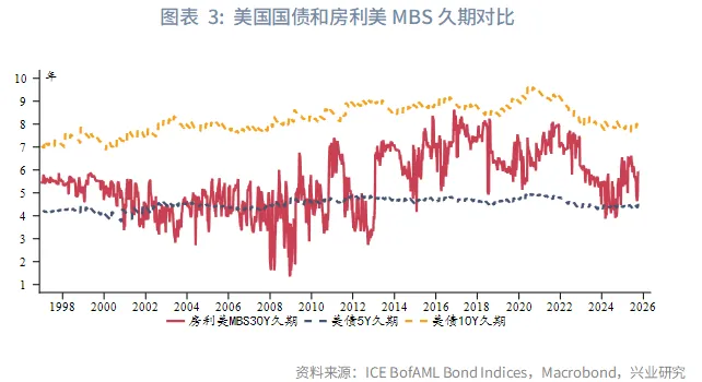 美国机构MBS以居民住房抵押贷款为底层资产,并得到三大GSE(房利美、房地美和吉利美)的担保,长期享受与美国国债同等的信用评级。投资者普遍认为其资产质量高、风险低,具有“准主权”特征。在二级市场上,机构MBS收益率与美债收益率走势高度同步,不过两者之间的相对利差仍会存在明显波动。