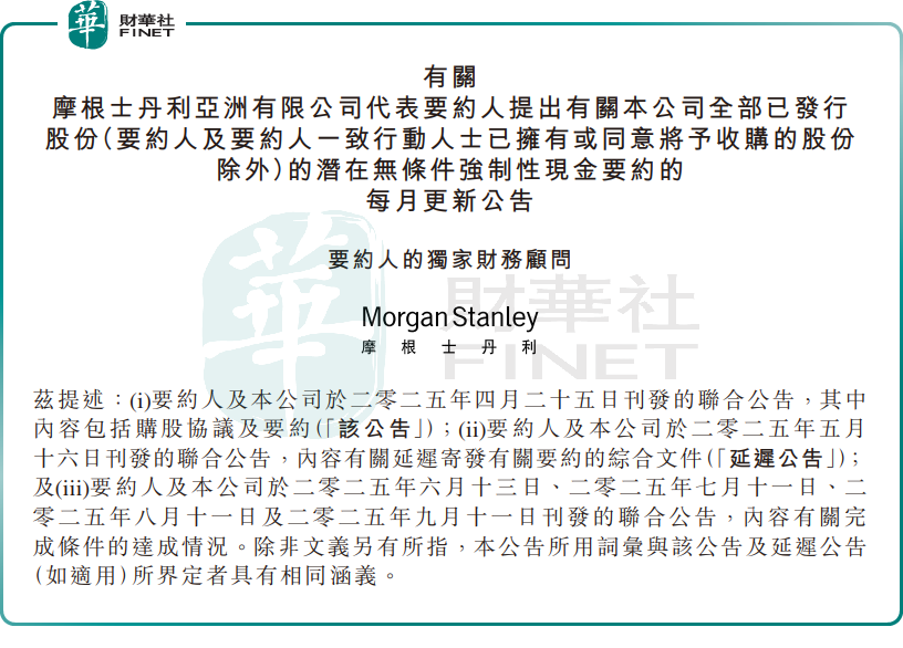 10月10日,耀才证券公告,于2025年9月23日,根据《证券及期货条例》第132(1)条,获证监会批准,要约人已成为耀才期货及商品有限公司、耀才证券国际(香港)有限公司、耀才资产管理有限公司及耀才环球外汇有限公司的主要股东。该批准有效期为六个月,具体落实须在此期间内完成,或者获得香港证监会书面同意延长有效期。