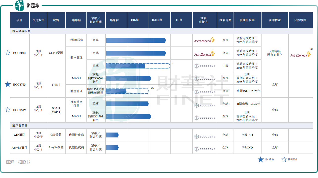 具体而言,核心产品ECC4703是一款口服肝脏靶向THR-β完全激动剂,代表针对MASH及肥胖/超重症的新一代疾病改善疗法,有潜力更持续且显著地降低肝脏脂肪、循环致动脉粥状样硬化脂质及肝纤维化程度,同时最大限度地降低因激活THR-α而可能产生的心脏及骨骼安全风险。
