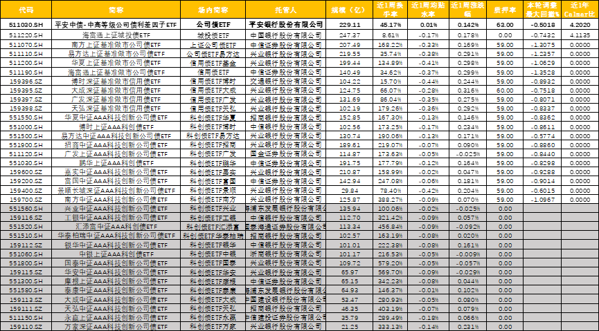 关注今年债市调整以来平安公司债ETF(511030)回撤控制排名第一,净值相对稳健且回撤可控,近1周平均升水1BP,可参考下表: