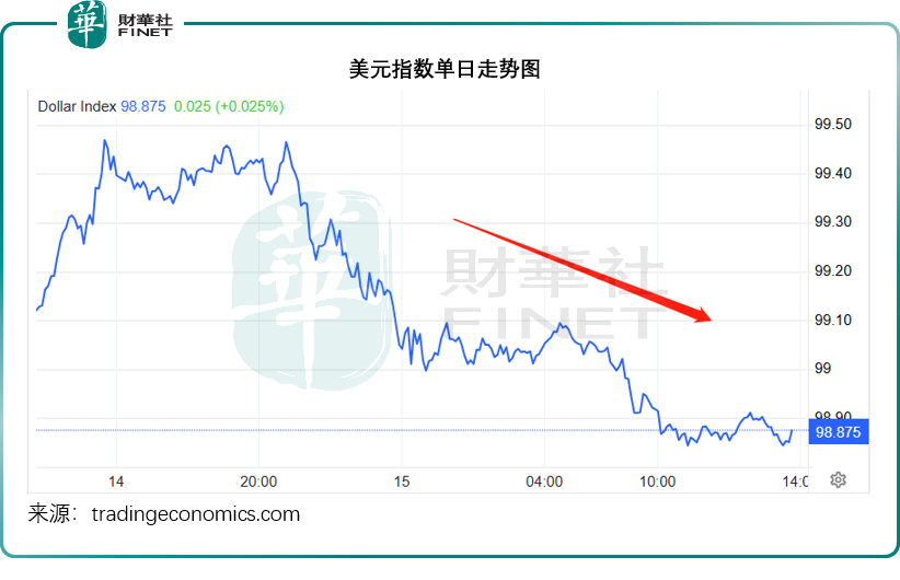 见下图,在鲍威尔发言后,美元指数开始回落,跌破99水平。