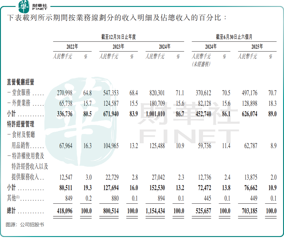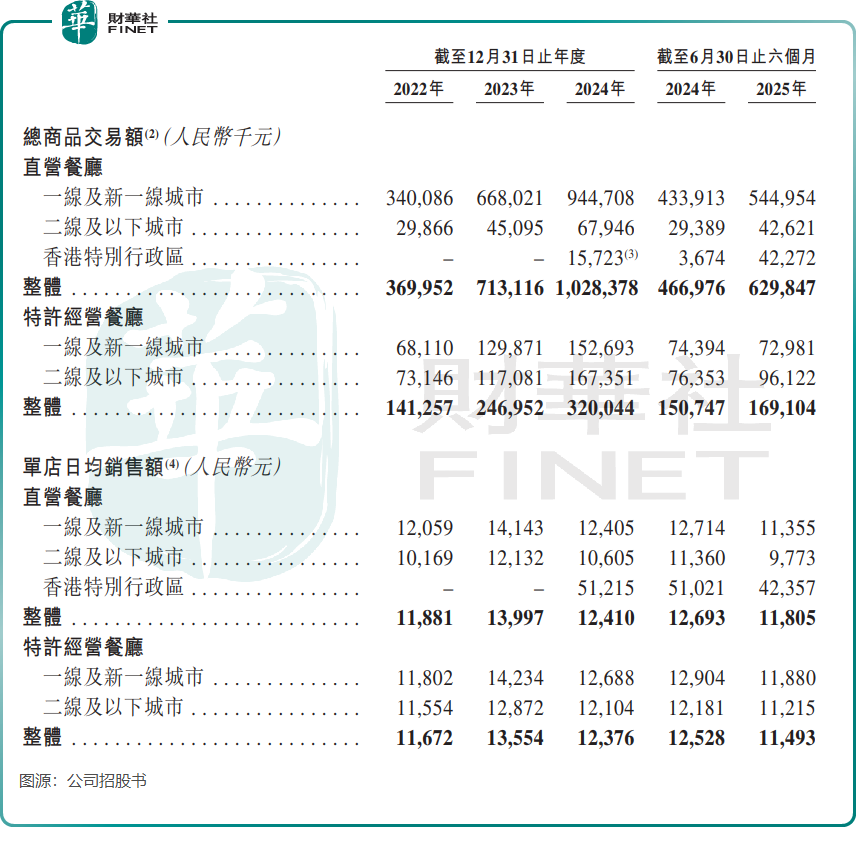 在2025年上半年,遇见小面的直营餐厅和特许经营餐厅的翻座率均出现下降,分别降至3.4次/天和3.1次/天。公司解释称,主要由于2025年上半年外卖平台上的推广活动持续加强,使若干顾客从堂食改为在外卖平台上下单。