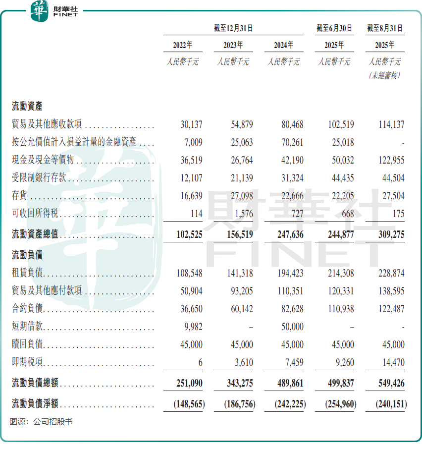 然而,在业绩向好的表象之下,遇见小面财务结构却暗藏风险。截至2025年8月31日,其流动资产为3.09亿元,流动负债高达5.49亿元,流动比率仅为0.56。同时,根据Wind数据,公司资产负债率2022年以来一直处于高位,2025年上半年为87.83%,显示其短期偿债压力巨大。