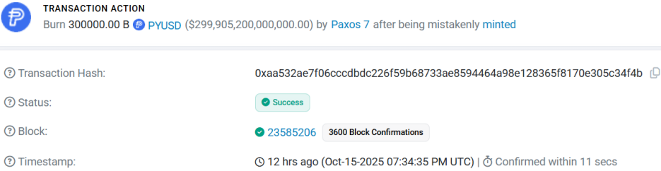 事件始于Paxos的一次内部操作,根据其在Etherscan上的交易记录推断,Paxos原本应准备在不同钱包之间转移3亿PYUSD,但却意外将其销毁了。