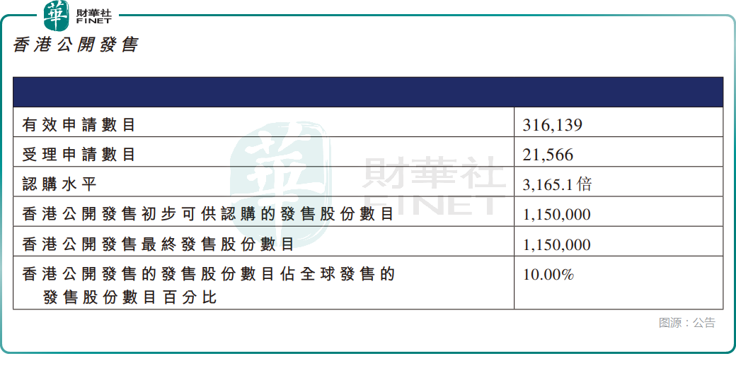 根据公告,香港公开发售方面,海西新药获3165.1倍认购,公开发售的发售股份最终数目为115万股股份,占发售股份总数的约10%。合共接获约31.61万份有效申请,受理申请数目21566份。