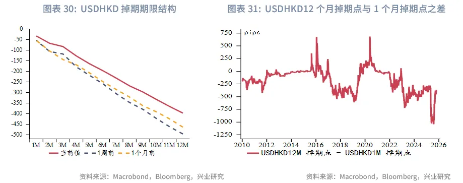 本周USDHKD汇率大幅下行0.2%至7.7668,由于目前港美资金利差再度收窄下套息交易活跃度下降,本周港元的升值或与资金持续流入香港市场有关。预计港汇短期内仍在目前偏强方区间震荡,但仍有可能逼近甚至触及7.75。本周USDCNY中间价时隔近1年首度下破7.1,显示监管维持汇率稳定的意图,带动离岸人民币汇率大幅升值,离岸与在岸人民币汇率差逐渐收窄,目前处于30pips,短期来看,USDCNH汇率相对中(离岸)美利差溢价逐渐收敛,人民币中间价与在岸、离岸汇率将逐渐并轨。