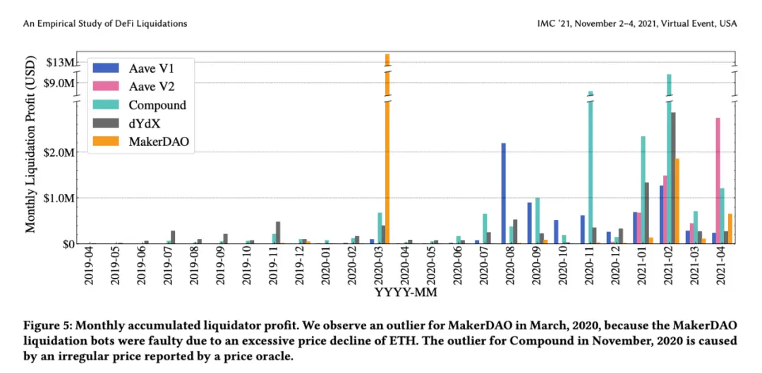 Perp 的本质依然是杠杆借贷产品,因为人为干预的不及时,反而会让链上协议更积极考虑潜在危机,以 DeFi Summer 时期的链上清算为例,在巨大的波动中,演化出 MakerDAO 和 Aave 双巨头。