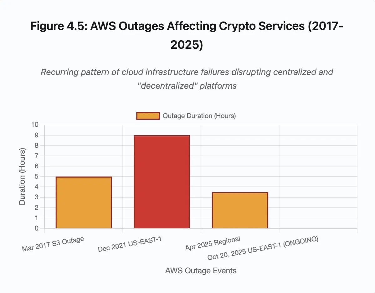 AWS宕机反复揭示加密生态中的集中基础设施风险: