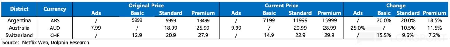 三季度奈飞主要在阿根廷、澳大利亚、瑞士等地区进行了涨价,阿根廷地区今年已经涨价过一次,但通胀太厉害,本币快速贬值,因此不得不连续涨价,澳大利亚和瑞士则属于欧美地区惯例的 1-2 年一次涨价周期。但当季涨价效应还需要下季度反应,从当期同比增速来看,三季度 ARPPU 增长最快的应该还是前两个季度重点涨价的北美、英国以及欧盟地区。