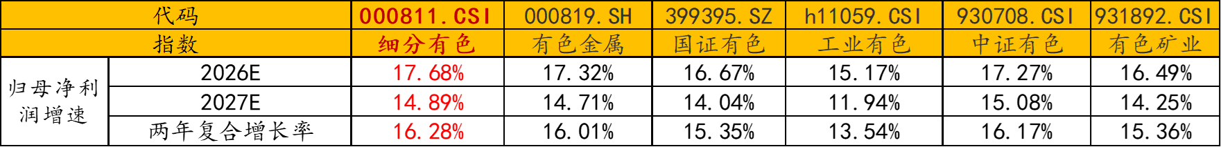 5、成长性更强:有色50ETF(159652)标的指数归母净利润未来两年复合增长率为16.28%,成长性优于同类指数!