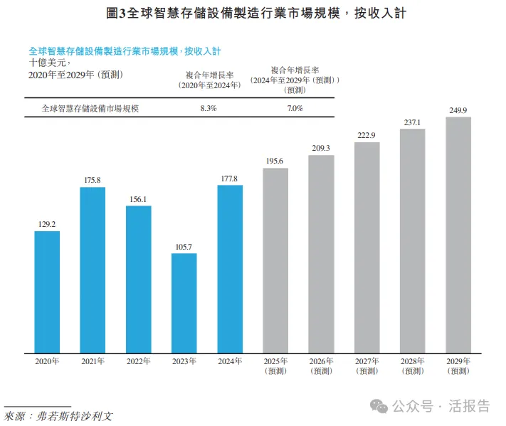 根据弗若斯特沙利文(Frost & Sullivan)的报告,2020年至2024年,全球智能存储制造市场规模从1,292.3亿美元增至1,778.1亿美元,复合年增长率8.3%。预计2029年市场规模将达2,498.9亿美元,2024年至2029年的复合年增长率约7.0%。