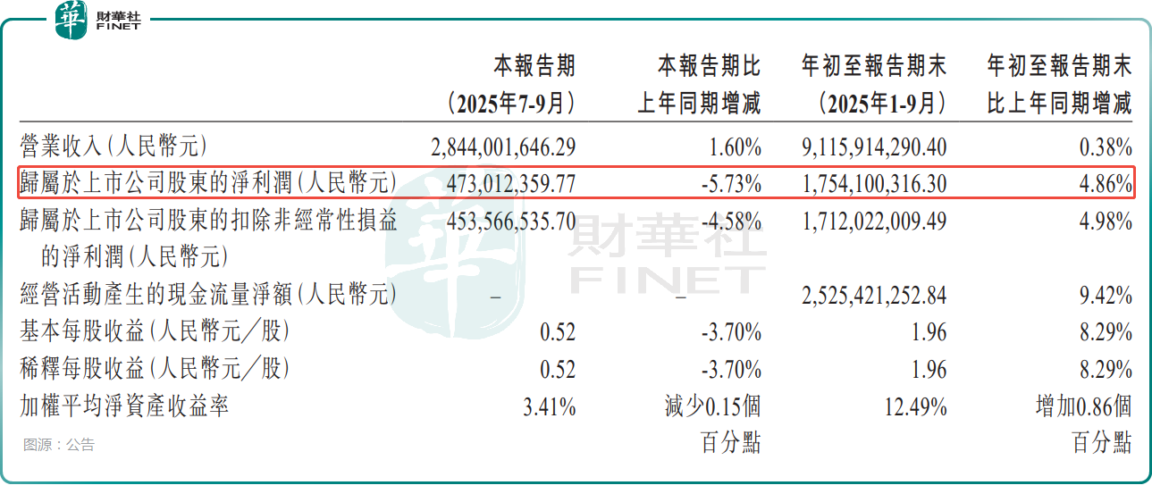 10月23日的公告显示,2025年前三季度,丽珠医药实现营业收入91.16亿元(人民币,下同),同比增长0.38%;实现归母净利润17.54亿元,同比增长4.86%。