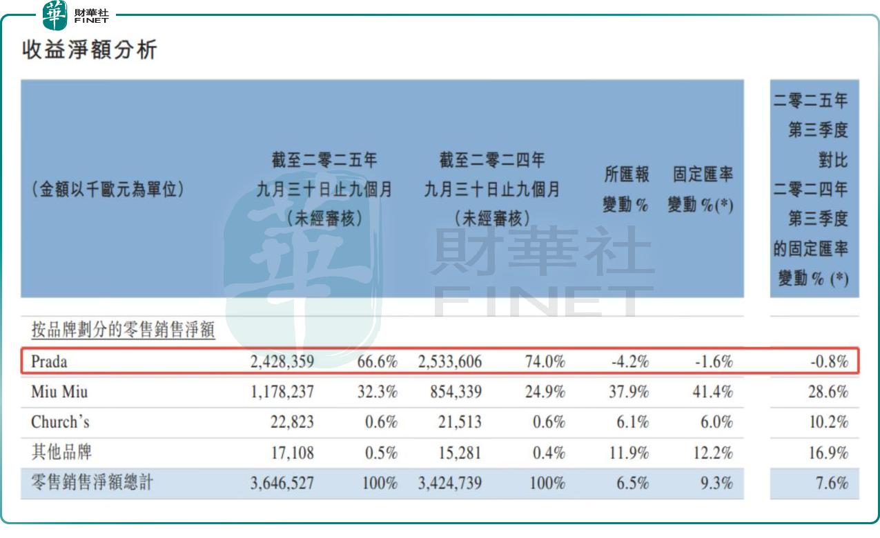 10月23日,普拉达公布2025年前三季度的收益情况。期内,其营收、零售销售等关键指标均实现稳健增长,且品牌与区域表现呈现结构性亮点。