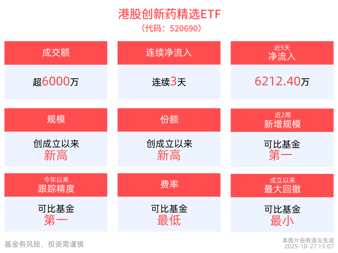 规模方面,港股创新药精选ETF最新规模达4.94亿元,创成立以来新高。