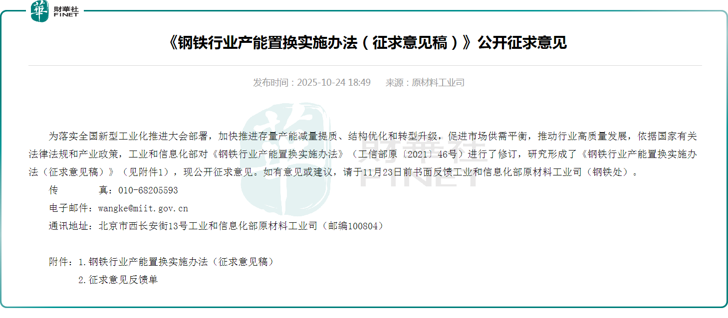 可以看到,当前“反内卷”成为政策主基调。业内人士认为,本次产能置换实施办法征求意见稿的发布,落后产能有望进一步加速退出。