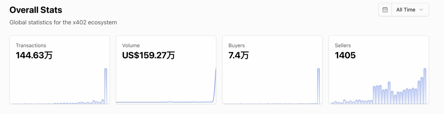 从链上数据观察,x402协议推出数月后,生态活动一直相对低迷,直到近期才出现显著的爆发式增长。