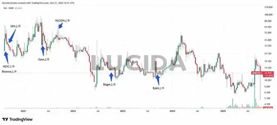 NMR 则先后在 MEXC、Binance、OKX、Gate、KUCOIN、Bitget、Bybit 上市。