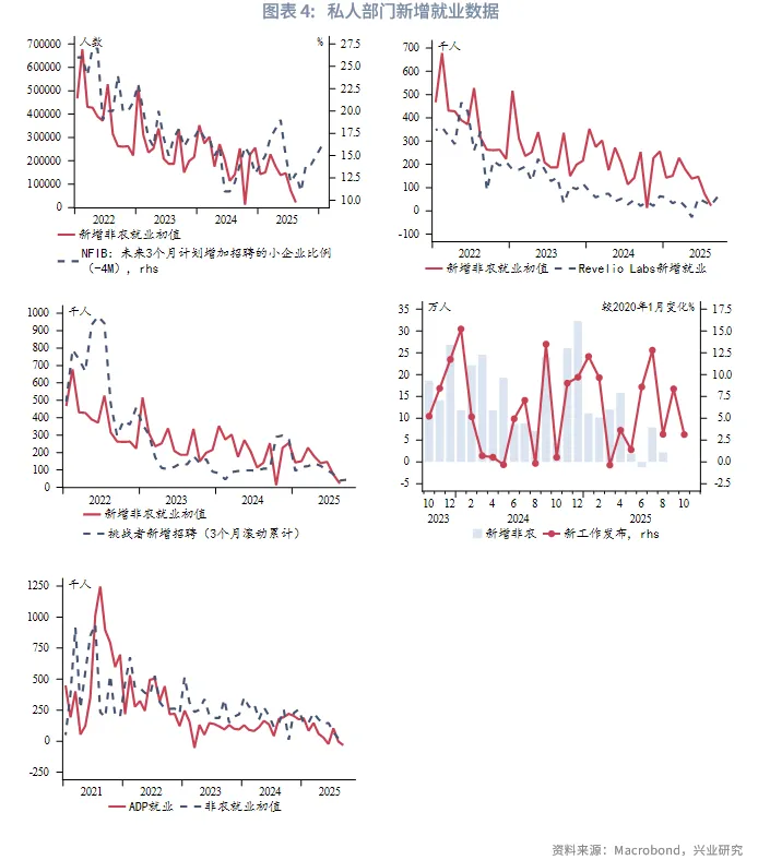 9月议息会议以来,美联储和市场均将关注重点从“物价稳定”转向“充分就业”,美国就业市场放缓的程度将很大程度上决定未来的降息节奏和路径。当前美国政府关门导致官方就业数据缺失,我们尝试从私人部门数据观测美国就业市场情况。