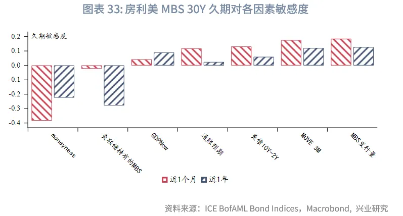 根据我们构建的久期模型[3],房利美MBS久期目前偏高估。从影响因素看,近1个月提前还款激励(moneyness)、美债和期限利差波动、通胀预期是影响久期的主要原因。