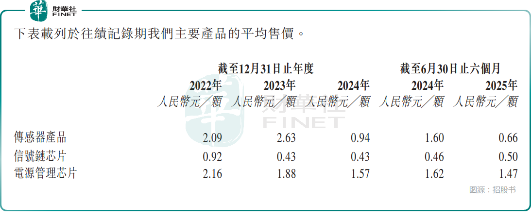 招股书显示,近些年,纳芯微的传感器产品、信号链芯片、电源管理芯片的价格整体在持续下降,传感器产品的降幅尤其巨大。