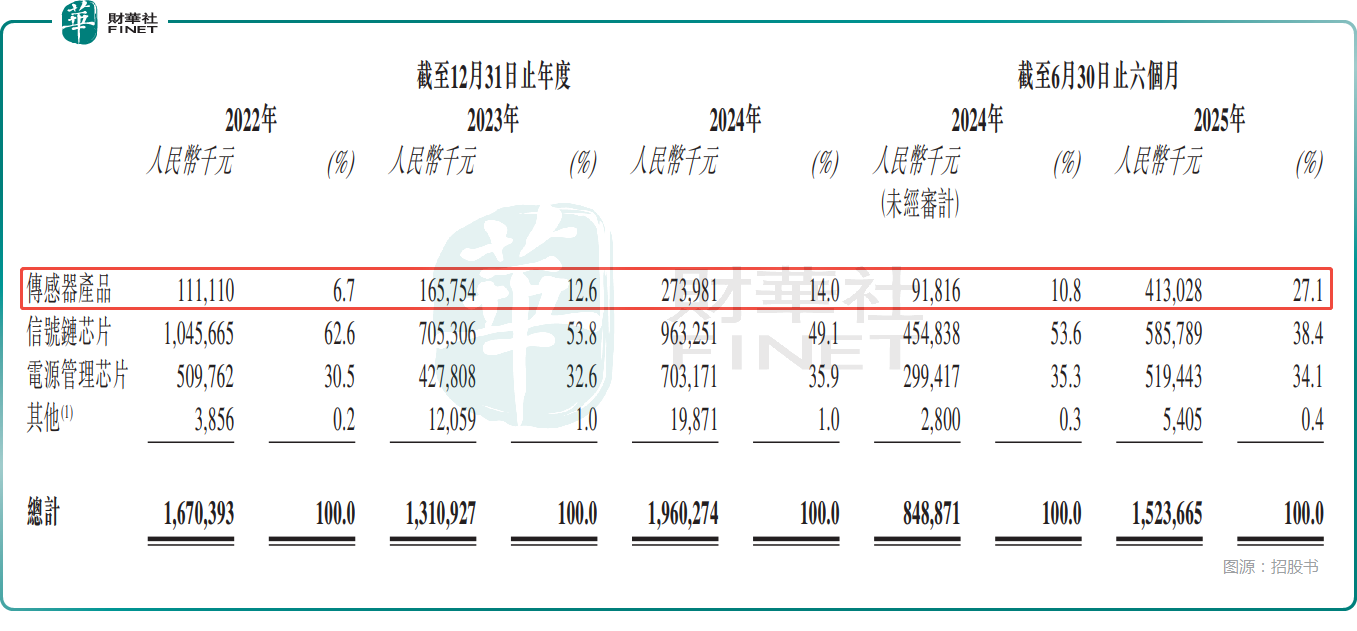 结合收入结构来看,传感器产品的收入占比出现了明显提升,信号链芯片的收入占比则在持续下降。