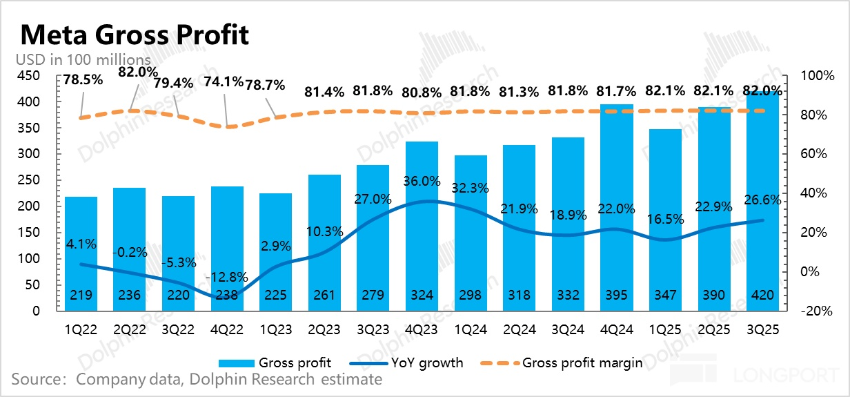 因此,在最关键问题上没有重现 2022 年的压力,Meta 就不会有太大的危机。目前看因为利润率压力,2026 年业绩增长肯定是要明显放缓的(除非 Meta AI 在一年内发挥神勇),但这依然会显得估值上并没有太多 buffer。