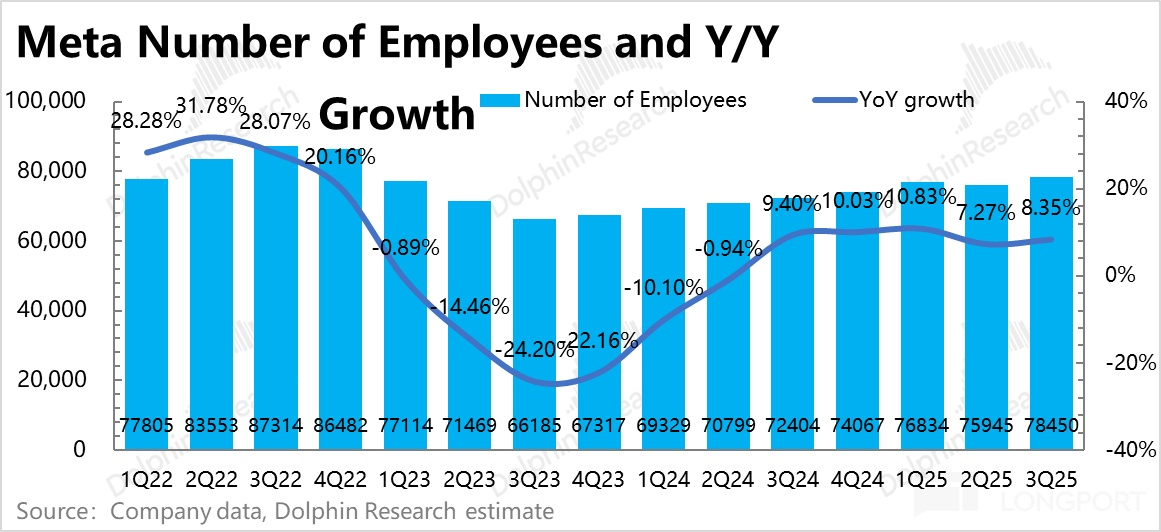 但这里海豚君要提醒的是,别被瞎破胆。海豚君到目前为止一直强调的是杀估值,不是杀逻辑。虽然三季度的业绩指引确实印证了市场的担忧:Meta 大兴土木、广招人才,业绩要难受了,但这只是公司自身的投入产出周期错配。