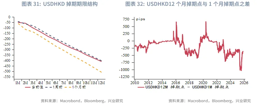港元资金面:受月末影响,本周短端港元流动性收紧,其中隔夜HIBOR大幅上行94bp至3.86%,1个月以上的HIBOR利率震荡不一,短端利率曲线的倒挂情况较上周加剧。受1个月SOFR略升和1个月HIBOR下行影响,1个月期限港美利差下行6bp至-77bp。短期来看,HIBOR或仍在高位震荡,中长期来看,HIBOR将震荡下行。