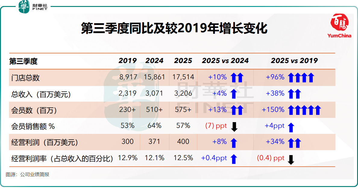 而必胜客的平均客单价同比大幅下降13%至70元(上年同期为82元),公司解释这是由于提供了更具性价比的产品组合。价格调整有效刺激了销量,第三季度必胜客同店交易量同比增长17%,外卖销售额同比增长27%。