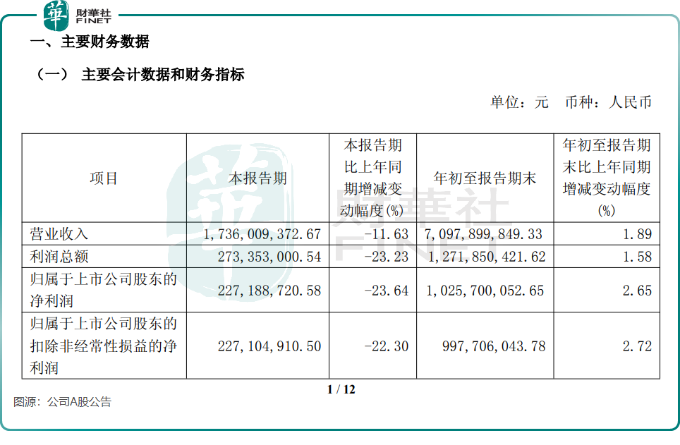 2025年第三季度,这一趋势更加明显。根据公司A股公告,期内公司营收同比下滑11.63%,归母净利润同比骤降23.64%,至2.27亿元。业绩变脸导致公司股价持续承压。