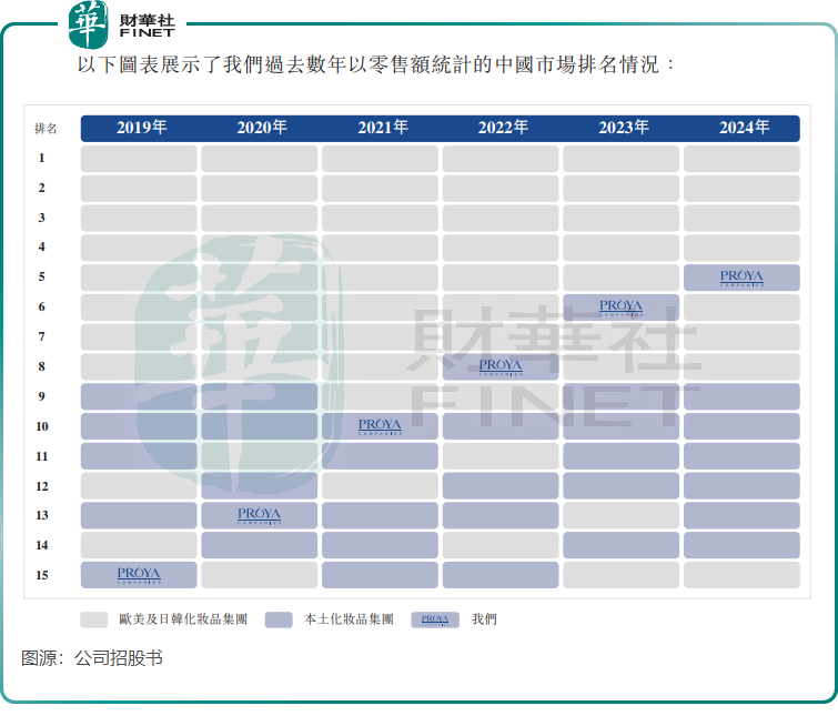 以2024年零售额计,珀莱雅在中国化妆品市场排名第五,同时也是最大的本土化妆品企业。