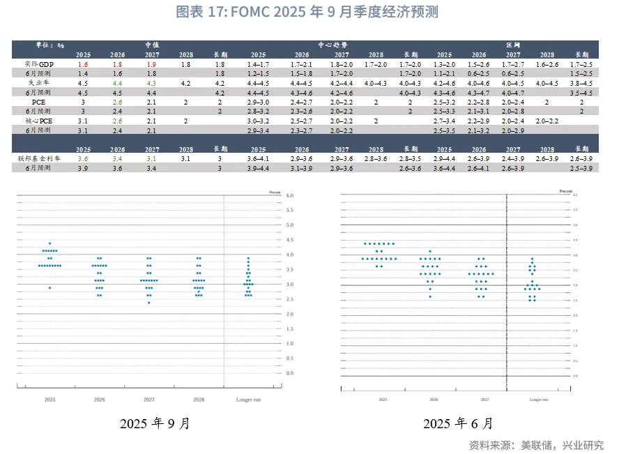 从CPI环比增速对应的同比路径看,在环比增速大概率处于0.1%~0.3%的情况下,美国CPI同比在2025年9月至2026年3月进入短期下行通道,第二季度将有温和再通胀,下半年同比持平或微降。在月均环比增速0.2%~0.3%的假设下,明年CPI同比大致在2.5%~3.5%。美国进口商品中10%可以直接认定为“进口”,假设这部分关税成本完全转嫁给消费者,对应当前的实际税率约20%,则关税对CPI的额外拉动约在0.2%~0.3%之间。在BRENT原油月均价60~65美元/桶的前提下,同样指向2025年第四季度至2026年第一季度CPI同比转入下行通道。尽管CPI和核心CPI同比仍然高于2%,但短期下行确定性较高,有助于巩固2026年上半年美联储降息路径。下半年若通胀持稳2%上方甚至回升,叠加经济复苏迹象,或将掣肘美联储进一步降息。