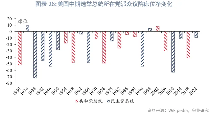 美国中期选举通常对在任总统所属党派不利,共和党或失去对国会的完全掌控。美国对外贸易政策或呈现“战术性缓和期”和“高度不确定性”并存,并呈现“区域分化”的特征。在中期选举前夕,共和党可能试图“打中国牌”扭转不利选情。