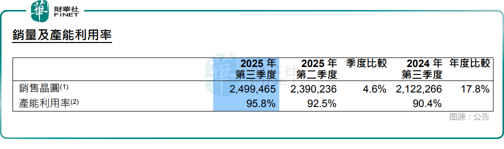 数据显示,三季度晶圆销量环比增长4.6%;而其三季度产能利用率已上升至95.8%,环比增长3.3个百分点,需求继续提升。