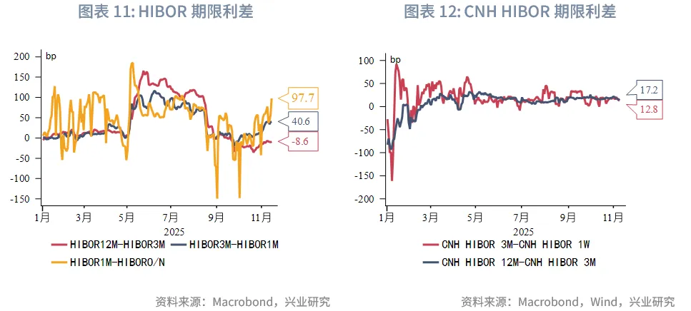 港元资金面:除隔离利率之外,其他期限的资金利率本周波动不大。其中,隔夜HIBOR下降29bp,而1至12个月期限HIBOR微升2-4bp。此外,1个月SOFR利率下行4bp,1个月期限港美利差小幅震荡上行6bp至-107bp。在当前利差环境下,预计套息交易将继续推动HIBOR下行。