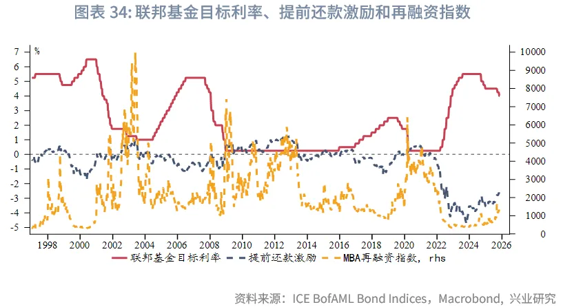 由于机构MBS收益率与美国国债收益率高度同步,在美债收益率区间大致框定后,对机构MBS收益率主要关注两点:一是,机构MBS相对美债的利差变化方向;二是,房贷早偿对于机构MBS久期的影响。