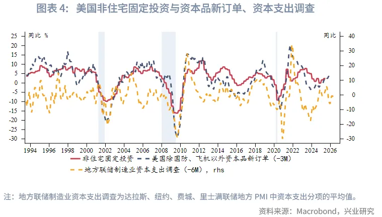预计2026年美国经济先抑后扬,在房地产周期和投资周期支撑下,基准预期是上半年库存周期触底实现“软着陆”,下半年可能进入本轮第三个库存周期。