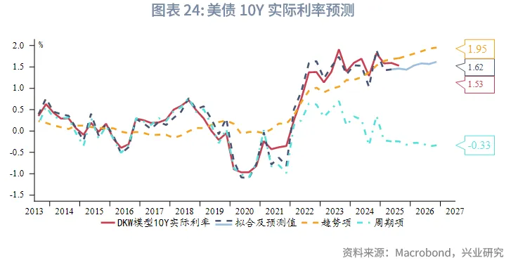综合趋势项和周期项的预测结果,2026年美债10Y实际利率可能运行于0.65%~2.59%,中枢在1.62%,较当前1.50%小幅回升。