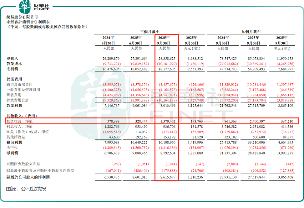 投资收益成为拉动网易利润增长的重要引擎。网易今年8月公布的13F持仓报告显示,其对拼多多的建仓动作发生在2025年第二季度,二季度末持有拼多多股票市值达3.7亿美元。