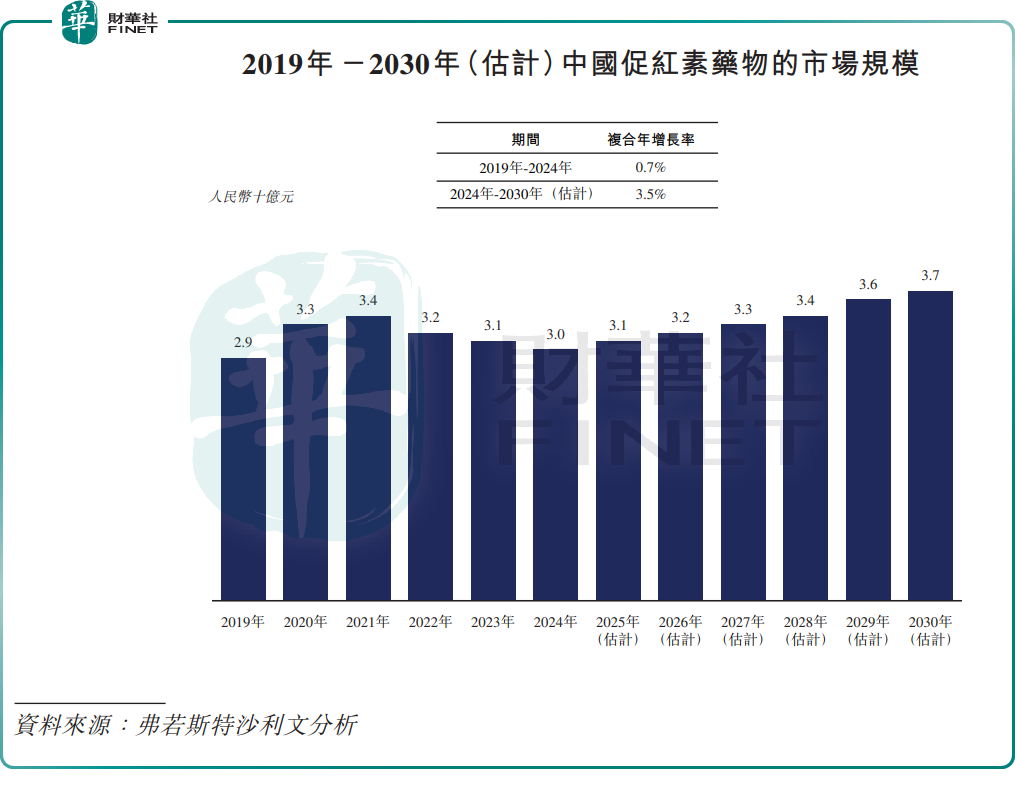 赛若金®所在的中国人干扰素α市场2024年规模仅31亿元,2019-2024年复合年增长率仅4.5%;依普定®所处的促红素药物市场更为低迷,2024年市场规模30亿元,上述期间复合年增速仅0.7%,过去三年持续下滑,行业天花板较低直接限制了公司业绩增长空间。