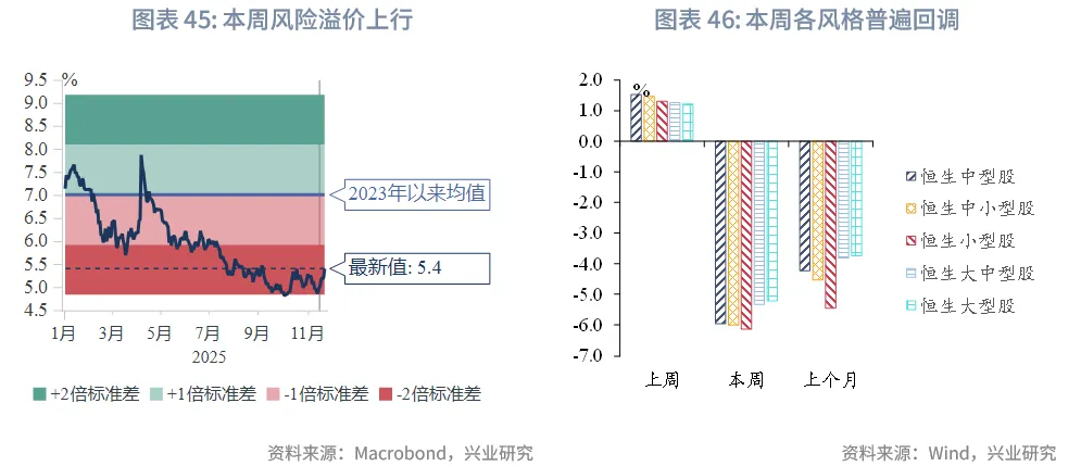 权益市场方面,一级市场IPO新增1家公司上市,再融资市场拟融资129亿港元。二级市场方面,恒指全周下跌5.1%,各风格行业普跌。展望后市,在海外流动性预期反复与年末效应叠加的背景下,港股或延续结构分化格局。资金倾向于寻求确定性,高股息与现金流稳健的板块仍具配置价值。
