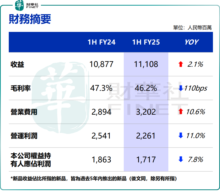 米果类方面,期内实现收益21.30亿元,同比增长3.5%,占比19.2%;毛利率同步改善1.3个百分点至43.1%,业务韧性持续显现。