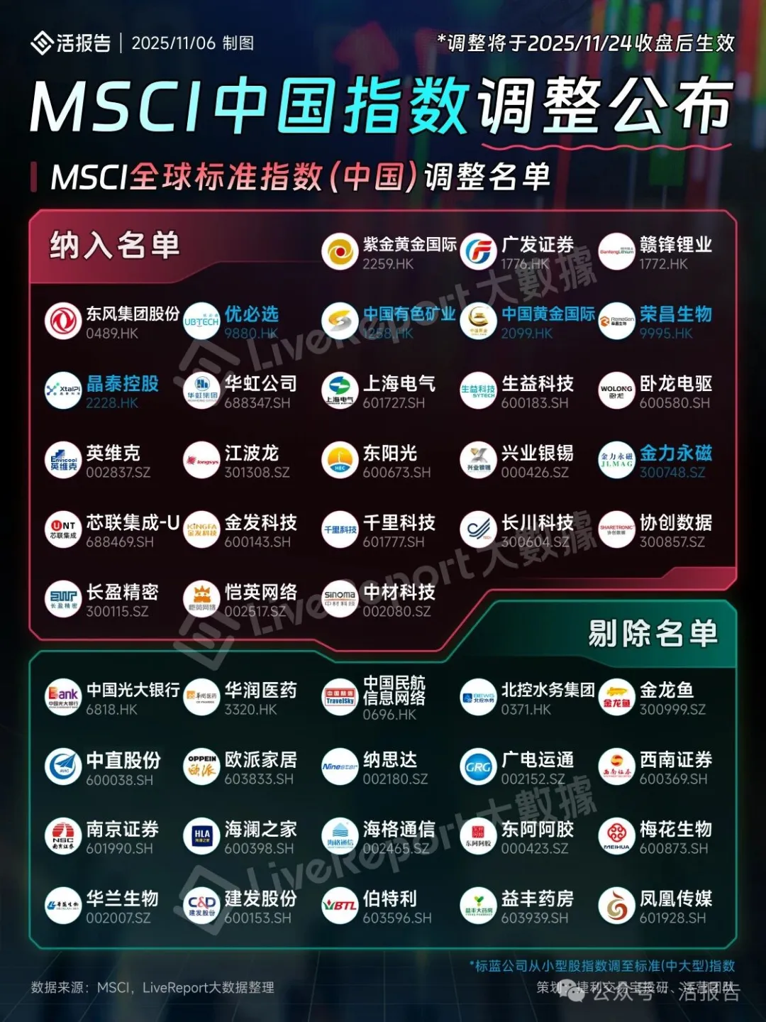 一、MSCI中国指数纳入9只港股,11月24日尾盘普遍异动