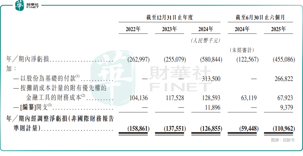 不过,在利润端,2022年至2024年及2025年上半年,希迪智驾分别录得亏损2.63亿元、2.55亿元、5.81亿元、4.55亿元;经调整净亏损分别为1.59亿元、1.38亿元、1.29亿元、1.11亿元。其中,2025年上半年亏损增加主要系减值亏损、一般及行政开支、研发开支大幅增加。