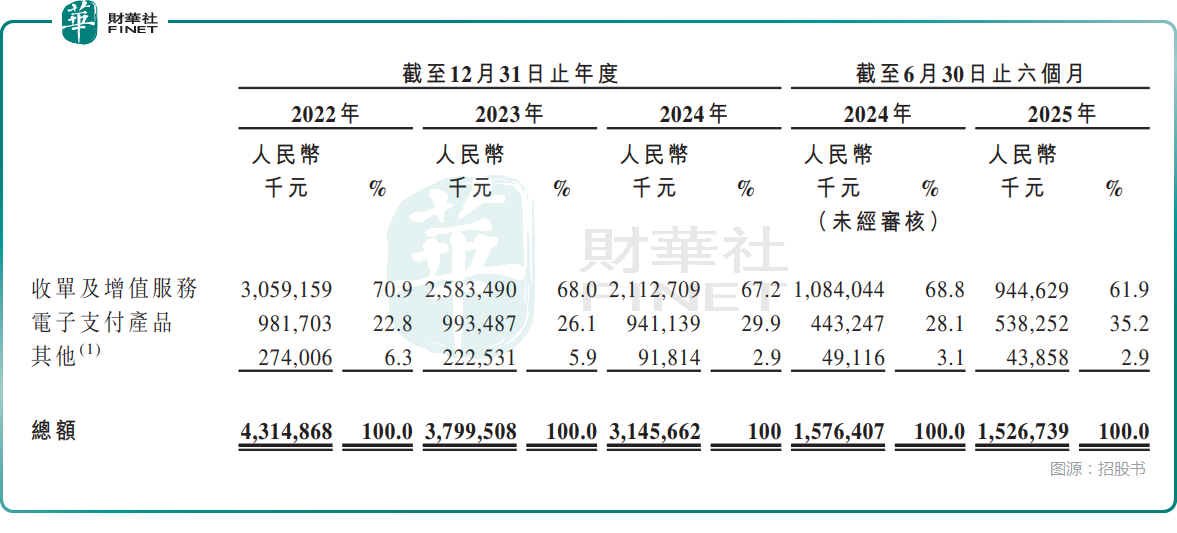 分业务来看,上半年,收单及增值服务实现收入9.45亿元,同比下降12.86%,毛利率27.0%,同比下降15.3个百分点,是中期收入、溢利下降的主要原因所在。