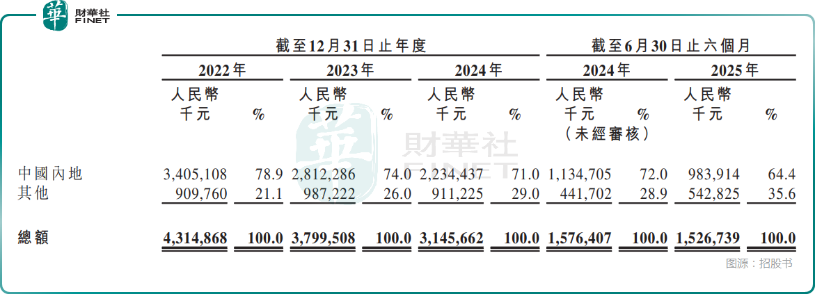 分区域来看,近些年中国内地市场实现的收入占总收入的比重呈现持续下降趋势,而其他市场的收入占比在持续提升,从2022年的21.1%增至2024年的29.0%,今年上半年继续增加到了35.6%。