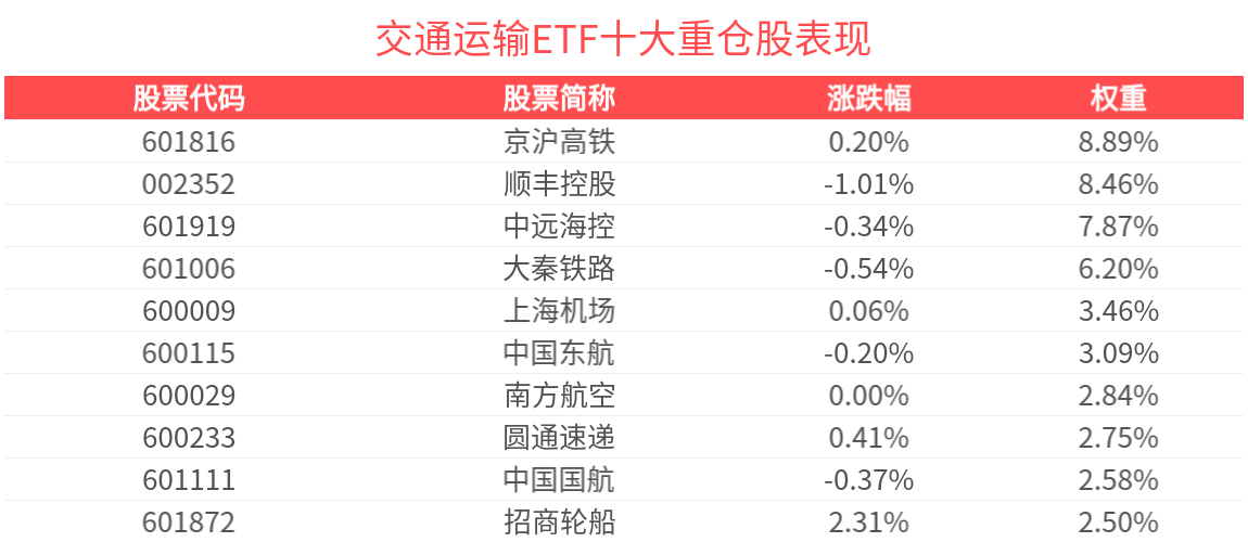 费率方面,交通运输ETF管理费率为0.50%,托管费率为0.10%。
